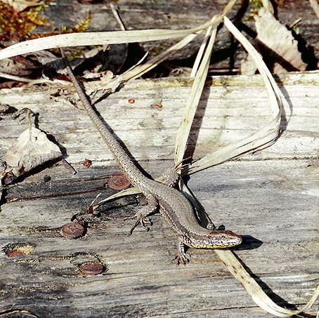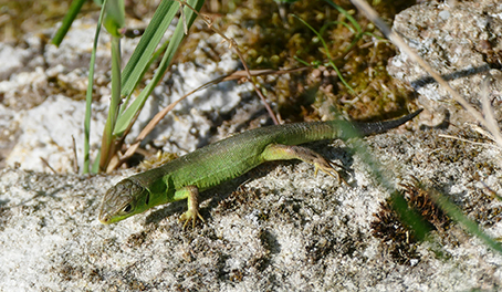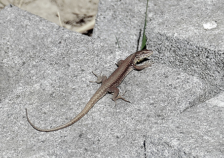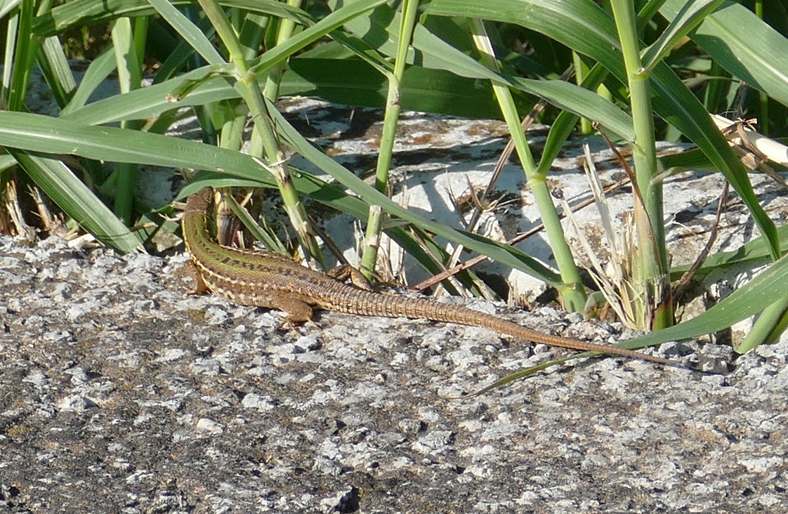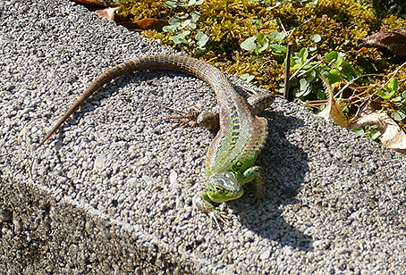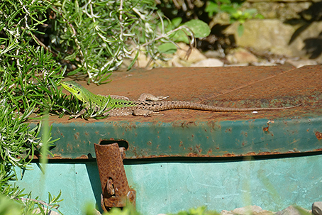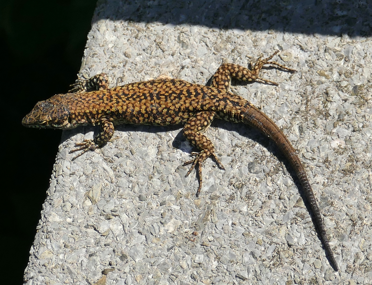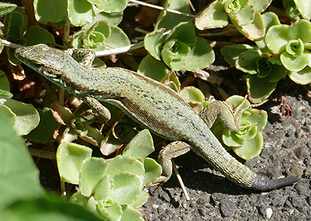 Introduced. Venetian lineage and Southern Alps lineage in hybridization with autochthone P. m. brongniardii.The same lizard from different angles (iridescent green-brown).
