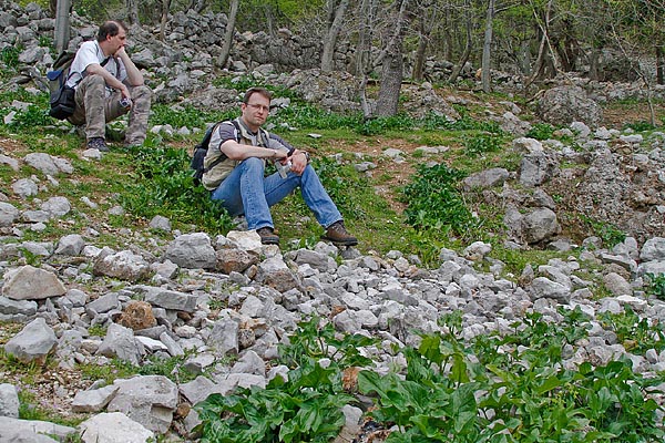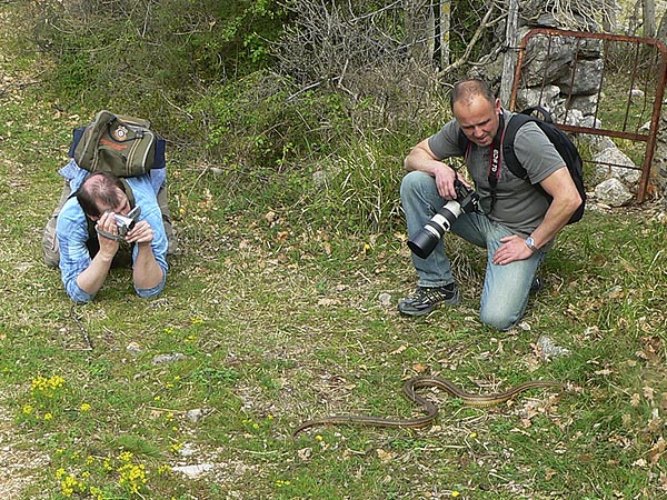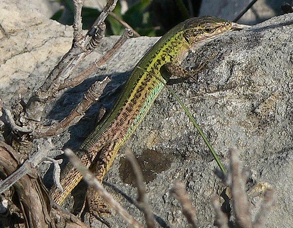 Unseren ersten Ausflug unternahmen wir bereits am Anreisetag ganz in der Nähe der Unterkunft. Nach kurzer Suche konnten wir hier die Prachtkieleidechse (Algyroides n. nigropunctatus), die Vierstreifennatter (Elaphe quatourlineata), die Riesensmaragdeidechse (Lacerta trilineata major) und die Ruineneidechse (Podarcis siculus campestris) finden.
