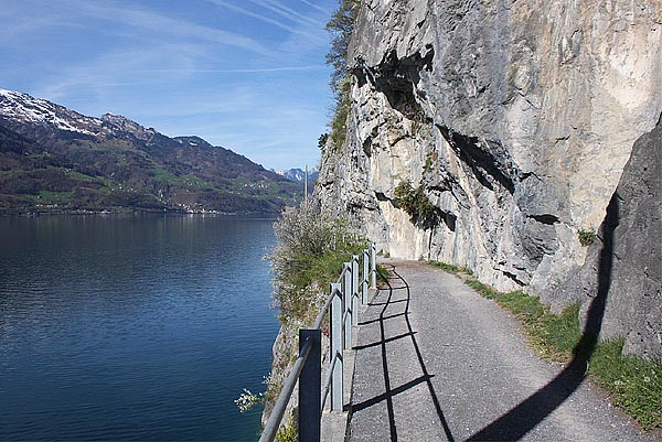 Östlich von Quinten verläuft ein Wanderweg Richtung Au. An der steilen glatten Felskante die fast senkrecht in den See abfällt befinden sich nur wenige Versteckmöglichkeiten für die Eidechsen, trotzdem konnte ich rechts und links am Wegrand Dutzende Tiere sehen.