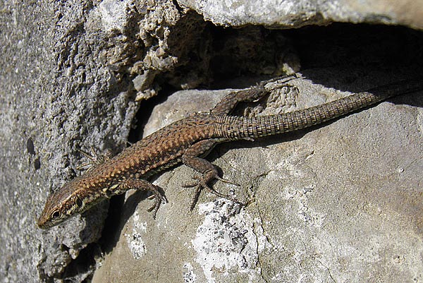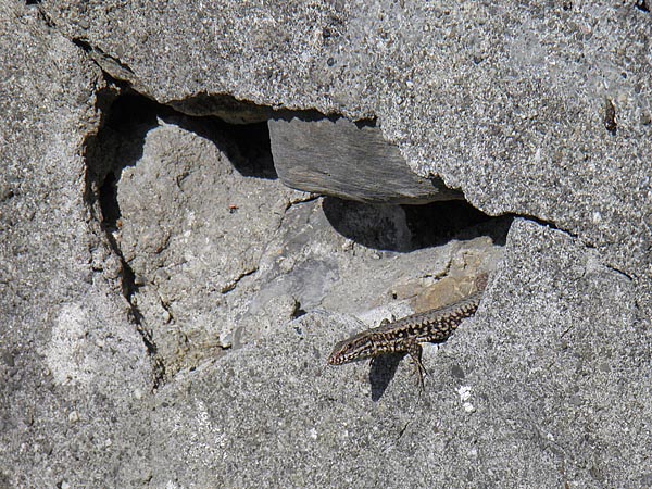 Am 31.08.2011 konnte ich auf dem Weg nach Italien bei einer Pause unerwartet eine mir noch unbekannte Mauereidechsenpopulation auf dem Festungsgelände am St. Luzisteig (Graubünden) vorfinden.