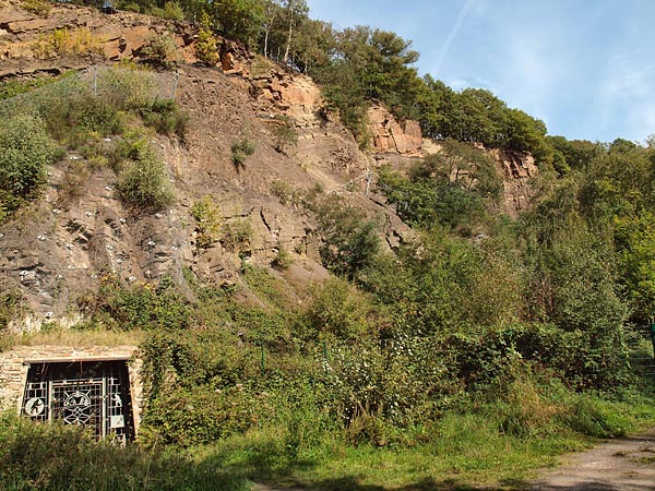 Als erstes versuchte ich mit Hilfe des Internet Informationen oder Bilder über Mauereidechsen in der dortigen Umgebung zu finden. Es besteht ja auch die Möglichkeit einer weiteren Aussetzung. Ich fand aber nichts. Ein Blick auf eine Karte von Witten im Maßstab 1:20000 zeigte mir, das in einer Entfernung (Luftlinie) von 350m der Steinbruch Dünkelberg beginnt (Teil der Zeche Nachtigall). Der nur zugängliche Eingang, an dem ich fotografieren konnte (der Rest des Steinbruchs ist abgesperrt), befindet sich in 500m Luftlinie von der Trockensteinmauer entfernt.