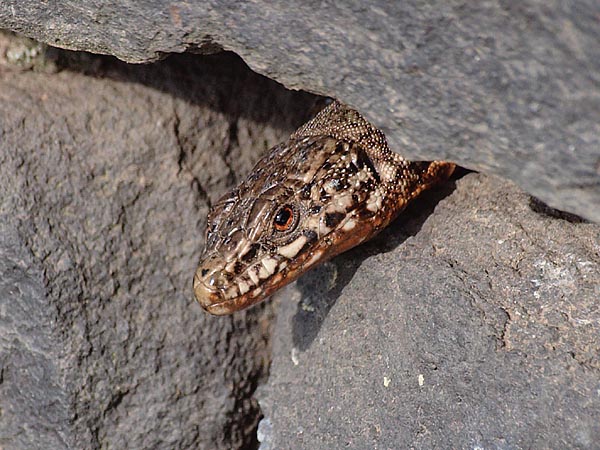 Ob es sich bei diesen im Steinbruch lebenden Mauereidechsen um eine weitere ausgesetzte Population handelt oder ob sich Podarcis muralis von der Trockensteinmauer her ausgebreitet hat, kann ich nicht feststellen. Hier wäre wohl eine weitere genetische Untersuchung interessant.