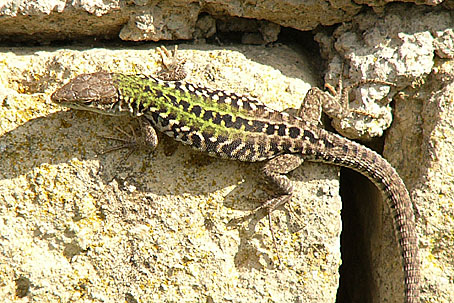 In der Zeit unseres Aufenthaltes herrschte eine kühle und regnerische Wetterperiode, die aber glücklicherweise immer wieder auch von wärmeren und sonnigen Abschnitten unterbrochen war. Diese wechselhafte Wettersituation führte zu interessanten Beobachtungen bezüglich der Häufigkeit von Geckos und Eidechsen. So konnten wir an einem Mauerabschnitt bei Sonnenschein sehr viele Eidechsen beobachten und an gleicher Stelle am nächsten Tag bei bewölktem Wetter überwiegend Mauergeckos. Geckos und Eidechsen sind fast flächendeckend und meist auch in hohen Populationsdichten auf der gesamten Insel verbreitet.