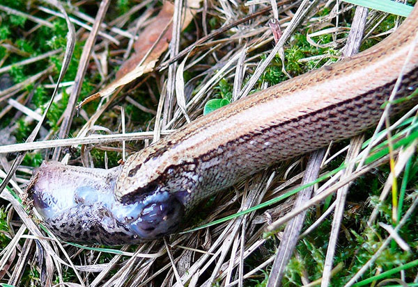 Abb. 10: This Slow Worm is eating a Leopard Slug Limax maximus.