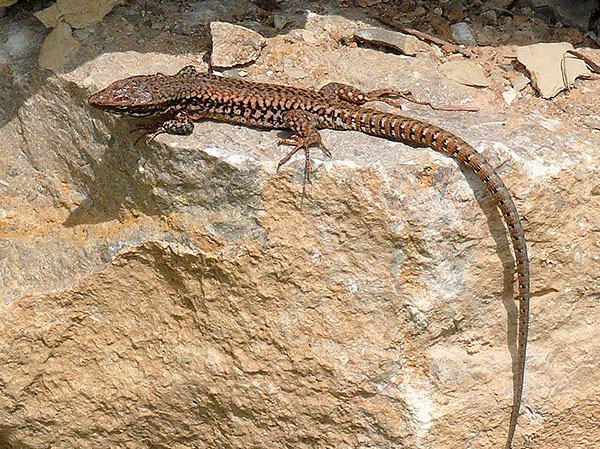 Common Wall Lizards (Podarcis muralis brongniardii) in good numbers can be seen on the walls in clear skies.