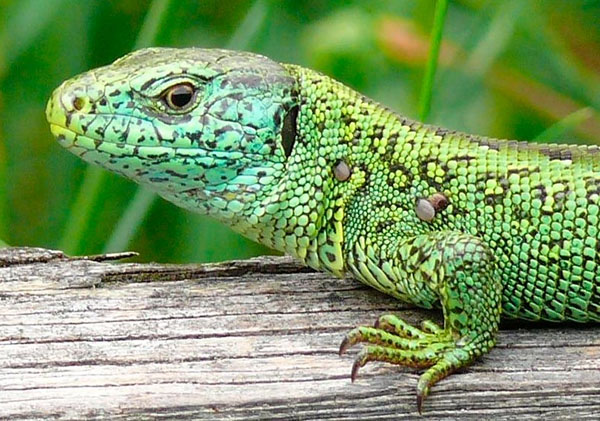 Abb. 8: Portrait of a male Sand Lizard infested with ticks.
