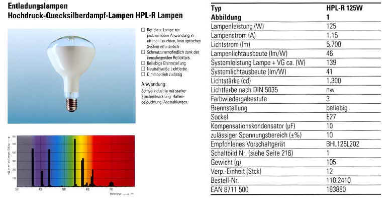 (Quecksilberdampflampen können nur mit einem entsprechenden Vorschaltgerät betrieben werden !!!)