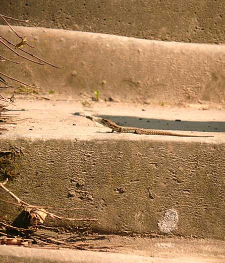 Dort, wo die Führungen stattfinden, war ich nicht. Ab etwa zehn Uhr waren dann kaum noch Eidechsen zu sehen. Ich vermute, dass es den Tieren inzwischen zu warm geworden war.