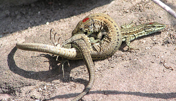 Abb. 4 Die Eidechsen waren überall unterwegs, auch auf dem Boden am Parkplatz.