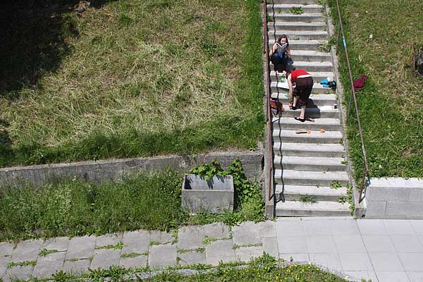 Abb. 17 Jeweils links und rechts von dieser Treppe befinden sich die Territorien von auffallenden männlichen Mauereidechsen samt >Gefolge<.