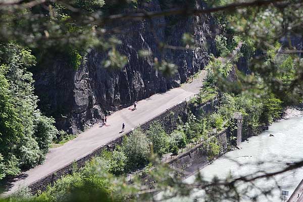 Weiter ging es über die Hl. Kreuz-Brücke über die Ill und der Ardetzenbergstraße entlang zum Schulkomplex des Instituts St. Joseph – dem Arbeitsplatz des Erstautors. In diesem Bereich sind die Mauereidechsen allgegenwärtig. Sie besiedeln den Bereich um die Brücke, Felsen, Blocksteinmauern und selbst den Straßenbelag, sofern der Efeubewuchs an den angrenzenden Mauern bis knapp über den Boden reicht.