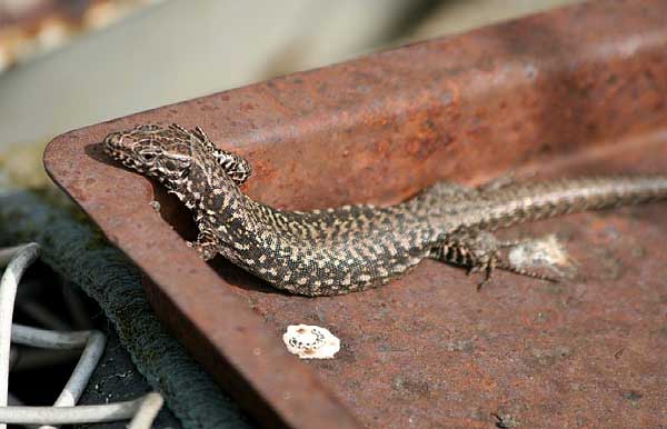 Die Mauereidechsen die sich frei sonnten, waren überaus nervös und nie lange still liegend. Dieses entspannte Männchen (Bild 17) war eine große Ausnahme.