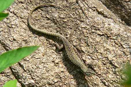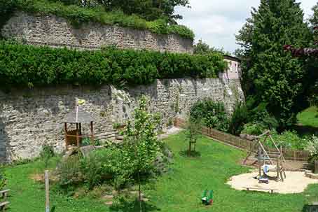 Bei unserem Besuch inspizierten wir natürlich auch mögliche Mauereidechsen-Habitate an anderen Stellen der alten Befestigungsmauern. An der Südostseite der Burgruine im Bereich des Städtischen Kindergartens (Abb. 9 ) wurden wir fündig und haben auch hier einige Mauereidechsen angetroffen. Zwei Exemplare konnten wir sogar am Fußweg zwischen dem Kindergarten und dem Museum entdecken (Abb. 10).