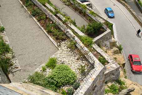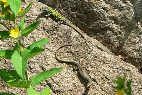 Wir folgten dem Stufenweg, der hinauf zum Burggarten führt. Im Bereich dieser Stufen, von denen auch einige mit Trockensteinmauern gestützte Terrassen zu erreichen sind (Abb. 2 bis 4), konnten wir sehr viele Mauereidechsen ausfindig machen.