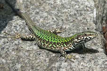Die meisten der Mauereidechsen waren kräftig grün gefärbt. Nur gelegentlich konnten wir unter den adulti auch braun gefärbte Exemplare entdecken (Abb. 6). Die Mauereidechsen in Schärding entsprechen in ihrem Erscheinungsbild sehr den ebenfalls eingeschleppten Podarcis muralis nigriventris aus Passau und Dresden. Wir gehen davon aus, dass es sich bei den Schärdinger Mauereidechsen auch um die selbe Unterart (Podarcis muralis nigriventris) handelt.