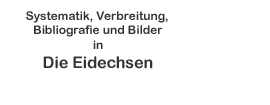 Liebe Eidechsenfreunde,mit dieser Internetpräsentation möchten wir Euch einen Einblick in den Artenkomplex der Echten Eidechsen (Lacertidae) ermöglichen und hoffen, Euch diese Tiergruppe mit den folgenden Beiträgen und Abbildungen näher zu bringen. Diese Seiten werden mit Unterstützung der Arbeitsgemeinschaft Lacertiden in der DGHT präsentiert! Bitte helfen Sie uns, diese Website zu erweitern und zu verbessern. Ohne diese Hilfe wäre unsere Website, mit derzeit 18240 Bilder und 41 Videos (von 1628 Autoren), 16504 Referenzen (6813 mit Zusammenfassung, 10415 mit PDF und 610 digitale Buch Links) und 232 Online-Artikel (von 82 Autoren), nicht das, was sie heute ist.