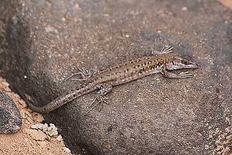 Peters, W.C.H. & Doria, G. (1882) - Note erpetologiche e descrizione di una nuova specie di Lacerta delle Isole Canarie. - Annali del Museo Civico de Storia Naturale di Genova, (1) 18: 431-434.  Bischoff, W. (1985) - Die Herpetofauna der Kanarischen Inseln. IV. Die Atlantische Eidechse, Gallotia atlantica (PETERS & DORIA, 1882). - herpetofauna, 7 (37): 15-24.  ×Die Beziehungen der kanarischen Eidechsen der Gattung Gallotia zu den anderen Lacertiden werden diskutiert. Die äußerlich klar zu erkennende Gallotia atlantica gliedert sich in 2 Unterarten G. a. atlantica und G. atlantica mahoratae. Der Lebensraum und die derzeit bekannten Daten über die Lebensweise werden beschrieben. Hinweise zur Haltung dieser Art im terrarium schließen den Beitrag ab. Gonzáles, P. & Pinto, F. & Nogales, M. & Jiménez-Asensio, J. & Hernández, M. & Cabrera, V.M. (1996) - Phylogenetic relationships of the Canary islands endemic lizard genus Gallotia (Sauria: Lacertidae), inferred from mitochondrial DNA sequences. - Molecular Phylogenetics and Evolution, 6 (1): 63-71.  ×Phylogenetic relationships among species and subspecies of the Canary Island endemic lizard genus Gallotia are inferred base on nucleotide sequence of fragments of 12S ribosomal RNA and cytochrome b mitochondrial genes. The four morphologically established species have also been recognized at the molecular level. Relative affinities among species follow an eatsern-western geographic transect. The nearly extinct species Galloti simonyi from the most western island of El Hierro is closely related to the common western species Gallotia galloti. The nearest branch to this pair is Gallotia stehlini from the central island of Gran Canaria, and finally, Gallotia atlantica from the two eastern and geologically oldest islands appears as the most distantly related species of the group. At the statistical level, four subspecies can be recognized in G. galloti, but only two in G. atlantica. Bischoff, W. (1998) - Gallotia atlantica (Peters & Doria, 1882) - Atlantische Eidechse, Purpurarien-Eidechse. - In: Bischoff, W. (Hrsg.): Handbuch der Reptilien und Amphibien Europas. Die Reptilien der Kanarischen Inseln, der Selvagens-Inseln und des Madeira Archipels. Wiesbaden (Aula). 236-264.  Molina Borja, M. & Rodriguez-Dominguez, M.A. (2004) - Evolution of biometric and life history traits in lizards (Gallotia) from the Canary islands. - Journal of Zoological Systematics and Evolutionary Research, Berlin, 42 (1): 44-53.  ×The aim was to study as to how biometric and life-history traits of endemic lacertids in the Canary Islands (genus Gallotia) may have evolved, and possible factors affecting the diversification process of this taxon on successively appearing islands have been deduced. To that end, comparative analyses of sexual dimorphism and scaling of different body, head and life-history traits to body size in 10 species/subspecies of Gallotia have been carried out. Both Felsenstein`s independent contrasts and Huey and Bennett`s `minimum evolution` analyses show that male and female snout-vent length (SVL) changed proportionally (sexual size dimorphism not changing with body size) throughout the evolution of these lizards and all within-sex biometric traits have changed proportionally to SVL. Life-history traits (size at sexual maturity, clutch size, hatchling SVL and mass, and life span) are highly correlated with adult female body size, the first two being the only traits with a positive allometry to female SVL. These results, together with the finding that the slope of hatchling SVL to female SVL regression was lower than that of SVL at maturity to female SVL, indicates that larger females reach maturity at a larger size, have larger clutches and, at the same time, have relatively smaller hatchlings than smaller females. There was no significant correlation between any pair of life-history traits after statistically removing the effect of body size. As most traits changed proportionally to SVL, the major evolutionary change has been that of body size (a ca. threefold change between the largest and the smallest species), that is suggested to be the effect of variable ecological conditions faced by founder lizards in each island.