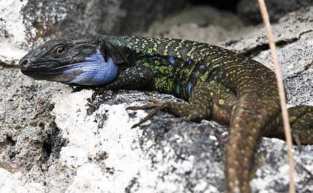 Bischoff, W. (1982) - Die innerartliche Gliederung von Gallotia galloti (Duméril & Bibron 1839) (Reptilia: Sauria: Lacertidae) auf Teneriffa, Kanarische Inseln. - Bonner zoologische Beiträge, Bonn, 33 (2-4): 363-382.  ×Die Insel Teneriffa (Kanarischer Archipel) wird von zwei Unterarten von Gallotia galloti bewohnt, von denen die Nominatform im Zentrum und im Süden lebt. Für sie wird ein Lectotypus designiert, und die terra typica wird auf das Tal von Güimar restringiert. Die größere und buntgefärbte Form der Anaga-Halbinsel und der Nordküste wird als Gallotia galloti eisentrauti ssp.n. (terra typica Bajamar) beschrieben. Das Vorkommen zweiter distinkter Unterarten, die auch sekundäre Kontaktzonen ausbilden, wird historisch diskutiert und stützt die Hypothese, daß Teneriffa ursprünglich aus mindestens zwei getrennten Teilen bestanden hat. Die Verbreitung von G. galloti auf den vier westlichen Kanaren-Inseln Teneriffa, Gomera, Hierro und La Palma wird mit derjenigen anderer Echsenarten dieser Inseln vergleichend diskutiert. Bischoff, W. (1998) - Die Reptilien der Kanarischen Inseln, der Selvagens-Inseln und des Madeira Archipels - Bischoff, W. (Hrsg.): Handbuch der Reptilien und Amphibien Europas. Band 6. - AULA-Verlag, Wiesbaden.  ×Das kleine »Galapagos vor der europäischen Haustür« ist Gegenstand dieses in sich geschlossenen Bandes. Er gibt erstmalig einen Überblick über die Herpetofauna dieser Inselgruppen. Molina Borja, M. & Rodriguez-Dominguez, M.A. (2004) - Evolution of biometric and life history traits in lizards (Gallotia) from the Canary islands. - Journal of Zoological Systematics and Evolutionary Research, Berlin, 42 (1): 44-53.  ×The aim was to study as to how biometric and life-history traits of endemic lacertids in the Canary Islands (genus Gallotia) may have evolved, and possible factors affecting the diversification process of this taxon on successively appearing islands have been deduced. To that end, comparative analyses of sexual dimorphism and scaling of different body, head and life-history traits to body size in 10 species/subspecies of Gallotia have been carried out. Both Felsenstein`s independent contrasts and Huey and Bennett`s `minimum evolution` analyses show that male and female snout-vent length (SVL) changed proportionally (sexual size dimorphism not changing with body size) throughout the evolution of these lizards and all within-sex biometric traits have changed proportionally to SVL. Life-history traits (size at sexual maturity, clutch size, hatchling SVL and mass, and life span) are highly correlated with adult female body size, the first two being the only traits with a positive allometry to female SVL. These results, together with the finding that the slope of hatchling SVL to female SVL regression was lower than that of SVL at maturity to female SVL, indicates that larger females reach maturity at a larger size, have larger clutches and, at the same time, have relatively smaller hatchlings than smaller females. There was no significant correlation between any pair of life-history traits after statistically removing the effect of body size. As most traits changed proportionally to SVL, the major evolutionary change has been that of body size (a ca. threefold change between the largest and the smallest species), that is suggested to be the effect of variable ecological conditions faced by founder lizards in each island. Bischoff, W. (2010) - Das Portrait. Gallotia galloti eisentrauti BISCHOFF, 1982 - Pracht-Kanareneidechse. - Die Eidechse, 21 (3): 84-94.