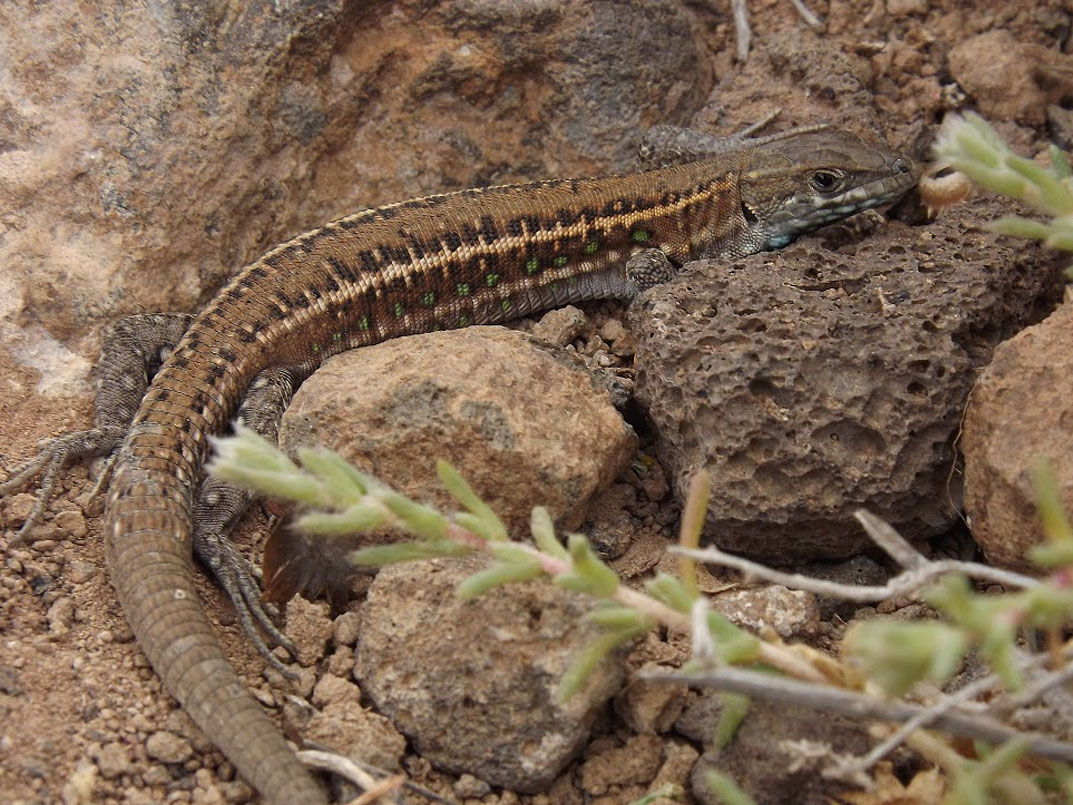 Peters, W.C.H. & Doria, G. (1882) - Note erpetologiche e descrizione di una nuova specie di Lacerta delle Isole Canarie. - Annali del Museo Civico de Storia Naturale di Genova, (1) 18: 431-434.  Bischoff, W. (1985) - Die Herpetofauna der Kanarischen Inseln. IV. Die Atlantische Eidechse, Gallotia atlantica (PETERS & DORIA, 1882). - herpetofauna, 7 (37): 15-24.  ×Die Beziehungen der kanarischen Eidechsen der Gattung Gallotia zu den anderen Lacertiden werden diskutiert. Die äußerlich klar zu erkennende Gallotia atlantica gliedert sich in 2 Unterarten G. a. atlantica und G. atlantica mahoratae. Der Lebensraum und die derzeit bekannten Daten über die Lebensweise werden beschrieben. Hinweise zur Haltung dieser Art im terrarium schließen den Beitrag ab. Gonzáles, P. & Pinto, F. & Nogales, M. & Jiménez-Asensio, J. & Hernández, M. & Cabrera, V.M. (1996) - Phylogenetic relationships of the Canary islands endemic lizard genus Gallotia (Sauria: Lacertidae), inferred from mitochondrial DNA sequences. - Molecular Phylogenetics and Evolution, 6 (1): 63-71.  ×Phylogenetic relationships among species and subspecies of the Canary Island endemic lizard genus Gallotia are inferred base on nucleotide sequence of fragments of 12S ribosomal RNA and cytochrome b mitochondrial genes. The four morphologically established species have also been recognized at the molecular level. Relative affinities among species follow an eatsern-western geographic transect. The nearly extinct species Galloti simonyi from the most western island of El Hierro is closely related to the common western species Gallotia galloti. The nearest branch to this pair is Gallotia stehlini from the central island of Gran Canaria, and finally, Gallotia atlantica from the two eastern and geologically oldest islands appears as the most distantly related species of the group. At the statistical level, four subspecies can be recognized in G. galloti, but only two in G. atlantica. Bischoff, W. (1998) - Gallotia atlantica (Peters & Doria, 1882) - Atlantische Eidechse, Purpurarien-Eidechse. - In: Bischoff, W. (Hrsg.): Handbuch der Reptilien und Amphibien Europas. Die Reptilien der Kanarischen Inseln, der Selvagens-Inseln und des Madeira Archipels. Wiesbaden (Aula). 236-264.  Molina Borja, M. & Rodriguez-Dominguez, M.A. (2004) - Evolution of biometric and life history traits in lizards (Gallotia) from the Canary islands. - Journal of Zoological Systematics and Evolutionary Research, Berlin, 42 (1): 44-53.  ×The aim was to study as to how biometric and life-history traits of endemic lacertids in the Canary Islands (genus Gallotia) may have evolved, and possible factors affecting the diversification process of this taxon on successively appearing islands have been deduced. To that end, comparative analyses of sexual dimorphism and scaling of different body, head and life-history traits to body size in 10 species/subspecies of Gallotia have been carried out. Both Felsenstein`s independent contrasts and Huey and Bennett`s `minimum evolution` analyses show that male and female snout-vent length (SVL) changed proportionally (sexual size dimorphism not changing with body size) throughout the evolution of these lizards and all within-sex biometric traits have changed proportionally to SVL. Life-history traits (size at sexual maturity, clutch size, hatchling SVL and mass, and life span) are highly correlated with adult female body size, the first two being the only traits with a positive allometry to female SVL. These results, together with the finding that the slope of hatchling SVL to female SVL regression was lower than that of SVL at maturity to female SVL, indicates that larger females reach maturity at a larger size, have larger clutches and, at the same time, have relatively smaller hatchlings than smaller females. There was no significant correlation between any pair of life-history traits after statistically removing the effect of body size. As most traits changed proportionally to SVL, the major evolutionary change has been that of body size (a ca. threefold change between the largest and the smallest species), that is suggested to be the effect of variable ecological conditions faced by founder lizards in each island.