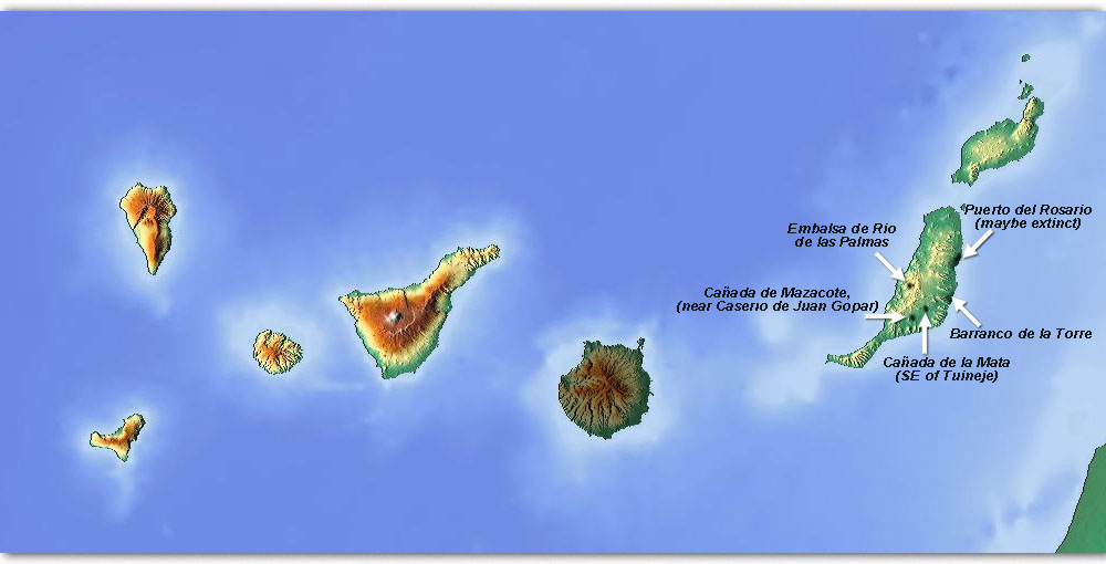 Schenkel, E. (1901) - Achter Nachtrag zum Katalog der herpetologischen Sammlung des Basler Museums. - Verhandlungen der Naturforschenden Gesellschaft in Basel, 13, 142-199.  Bischoff, W. (1998) - Die Reptilien der Kanarischen Inseln, der Selvagens-Inseln und des Madeira Archipels - Bischoff, W. (Hrsg.): Handbuch der Reptilien und Amphibien Europas. Band 6. - AULA-Verlag, Wiesbaden.  ×Das kleine »Galapagos vor der europäischen Haustür« ist Gegenstand dieses in sich geschlossenen Bandes. Er gibt erstmalig einen Überblick über die Herpetofauna dieser Inselgruppen. Molina Borja, M. & Rodriguez-Dominguez, M.A. (2004) - Evolution of biometric and life history traits in lizards (Gallotia) from the Canary islands. - Journal of Zoological Systematics and Evolutionary Research, Berlin, 42 (1): 44-53.  ×The aim was to study as to how biometric and life-history traits of endemic lacertids in the Canary Islands (genus Gallotia) may have evolved, and possible factors affecting the diversification process of this taxon on successively appearing islands have been deduced. To that end, comparative analyses of sexual dimorphism and scaling of different body, head and life-history traits to body size in 10 species/subspecies of Gallotia have been carried out. Both Felsenstein`s independent contrasts and Huey and Bennett`s `minimum evolution` analyses show that male and female snout-vent length (SVL) changed proportionally (sexual size dimorphism not changing with body size) throughout the evolution of these lizards and all within-sex biometric traits have changed proportionally to SVL. Life-history traits (size at sexual maturity, clutch size, hatchling SVL and mass, and life span) are highly correlated with adult female body size, the first two being the only traits with a positive allometry to female SVL. These results, together with the finding that the slope of hatchling SVL to female SVL regression was lower than that of SVL at maturity to female SVL, indicates that larger females reach maturity at a larger size, have larger clutches and, at the same time, have relatively smaller hatchlings than smaller females. There was no significant correlation between any pair of life-history traits after statistically removing the effect of body size. As most traits changed proportionally to SVL, the major evolutionary change has been that of body size (a ca. threefold change between the largest and the smallest species), that is suggested to be the effect of variable ecological conditions faced by founder lizards in each island. Cox, S.C. & Carranza, S. & Brown, R.P. (2010) - Divergence times and colonization of the Canary Islands by Gallotia lizards. - Molecular Phylogenetics and Evolution, 56 (2): 747-757.  ×The Canary Islands have become a model region for evolutionary studies. We obtained 1.8 Kbp of mtDNA sequence from all known island forms of the endemic lizard genus Gallotia and from its sister taxon Psammodromus in order to reanalyze phylogenetic relationships within the archipelago, estimate lineage divergence times, and reconstruct the colonization history of this group. Well-supported phylogenies were obtained using maximum parsimony and Bayesian inference. Previous studies have been unable to establish the branching pattern at the base of the tree. We found evidence that G. stehlini (Gran Canaria) originated from the most basal Gallotia node and G. atlantica from the subsequent node. Divergence times were estimated under a global clock using Bayesian Markov Chain Monte Carlo methods implemented by three different programs: BEAST, MCMCTREE, MULTIDIVTIME. Node constraints were derived from subaerial island appearance data and were incorporated into the analyses as soft or hard maximal bounds. Posterior node ages differed slightly between programs, possibly due to different priors on divergence times. The most eastern Canary Islands first emerged just over 20 mya and their colonization appears to have taken place relatively quickly, around 17–20 mya. The subsequent node is consistent with cladogenesis due to colonization of Gran Canaria from the eastern islands about 11–13 mya. The western islands appear to have been colonized by a dispersal event from Lanzarote/Fuerteventura in the east to either La Gomera or one of the ancient edifices that subsequently formed Tenerife in the west, about 9–10 mya. Within the western islands, the most recent node that is ancestral to both the G. intermedia/G. gomerana/G. simonyi and the G. galloti/G. caesaris clades is dated at about 5–6 mya. Subsequent dispersal events between ancient Tenerife islands and La Gomera are dated at around 3 mya in both clades, although the direction of dispersal cannot be determined. Finally, we show that G. galloti is likely to have colonized La Palma more than 0.5 Ma after emergence of the island 1.77 mya, while G. caesaris from the same clade may have colonized El Hierro very soon after it emerged 1.12 mya. There are tentative indications that the large-bodied endangered G. simonyi colonized El Hierro around the same time or even later than the smaller-bodied G. caesaris. This study demonstrates the effectiveness of Bayesian dating of a phylogeny in helping reconstruct the historical pattern of dispersal across an oceanic archipelago.