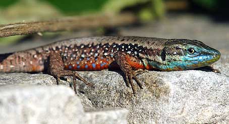 Gray, J.E. (1838) - Catalogue of the slender-tongued saurians, with descriptions of many new genera and species. Part 1. - Annals of natural history, (1) 1: 274-283.  Bischoff, W. & Schmidtler, J.F. (1999) - New data on the distribution, morphology and habitat choice of the Lacerta laevis – kulzeri complex. - Natura Croatica, Zagreb, 8: 211-222.  ×Presently, within the lizard populations included in the Lacerta laevis-kulzeri complex, two main groups appear to be well distinguished in terms of morphology, distribution and ecology: Lacerta laevis Gray, 1838 (sensu lato) which is generally distributed in the Mediterranean region to the west of the Rift valley between Central Israel/Palestine and southern Turkey. The species prefers humid habitats in oak forests, gardens and valleys. Despite considerable morphological variation, only one subspecies (troodica from Cyprus) has been acknowledged to date. During our research in the northern mountains to the east of the rift valley (Syria/Turkey), a quite distinct rock lizard was detected living in hills with sparse vegetation; our classification of it under L. laevis s.l. is highly provisional. The second group comprises the often misunderstood rock-lizard Lacerta kulzeri Müller & Wettstein, 1932, described from Bcharré/Lebanon. It is mainly distributed in the continental mountains and hill lands to the east of the Rift valley, from the Anti-Lebanon to Petra/Jordan in the south. Morphologically different and isolated populations occur here and at the eastern side of the Lebanon Mts. and the volcanic Djebel Druz/South Syria. Near Bloudan/Anti-Lebanon and at Djebel Barouk/Lebanon Mts. both groups were found sympatrically. Bosch, H.A.J. in den & Odierna, G. & Aprea, G. & Barucca, M. & Canapa, A. & Capriglione, T. & Olmo, E. (2003) - Karyological and genetic variation in the Middle Eastern lacertid lizards Lacerta laevis and Lacerta kulzeri-complex: a case of chromosomal allopatric speciation. - Chromosome Research, Dordrecht, 11 (2): 165-178.  ×Karyological (standard and C, Ag-NOR and Alu-I banding methods) and mtDNA analyses (cytochrome b and 12S rRNA) were conducted on specimens from eight allopatric populations of the Lacerta kulzeri complex. Parallel analyses were performed for comparison on Lacerta laevis specimens. Karyological and molecular studies support the morphological and ethological evidence indicating the specific separation between Lacerta laevis and Lacerta kulzeri