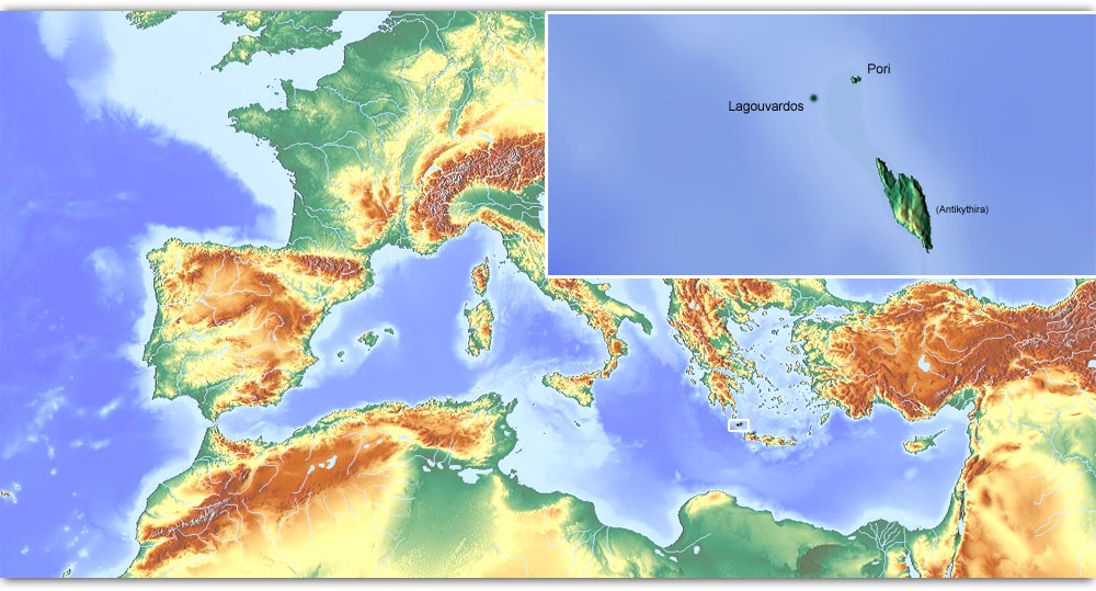 Islet Pori, 7.4 km N of the island of Antikythira.