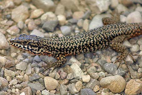 Boscá, E. (1916) - Dos observaciónes a propósito de la Lacerta muralis en España. - Boletín de la Real Sociedad Española de Historia Natural, 16: 327-330.  Castilla, A.M. & Fernandez-Pedrosa, V. & Backeljau, T. & Gonzales, A. & Latorre, A. & Moya, A. (1999) - Conservation genetics of insular Podarcis lizards using partial cytochrome b sequences. - Molecular Ecology, 7: 1047-1411.  ×Sequence data derived from a 306 bp fragment of mitochondrial cytochrome b and molecular variance estimates were used to investigate the genetic population structure of the endangered and endemic lizard Podarcis atrata of the Columbretes archipelago (Mediterranean, Spain). Our results show a very high and significant among-population genetic differentiation. FST values and phylogenetic analyses confirm the evolutionary distinctiveness of P. atrata populations, suggesting that the populations of these islands deserve special protection measures. The populations of the two islands Columbrete Grande and Mancolibre are less differentiated than those of Foradada and Lobo, and seem to have retained mainland haplotypes. This situation needs further attention as the origin of the mainland haplotypes is still unclear. If they are a result of recent introductions from mainland specimens, then they may represent a threat to the endemic lizards of the Columbretes islands. Gabirot, M. & Castilla, A.M. & López, P. & Martín, J. (2010) - Differences in chemical signals may explain species recognition between an island lizard, Podarcis atrata, and related mainland lizards, P. hispanica. - Biochemical Systematics and Ecology, 38 (4): 521-528.  ×Chemical signals can be the basis of interspecific recognition and speciation in many animals. The Columbretes Islands wall lizard, Podarcis atrata is very close genetically to the mainland Iberian wall lizard Podarcis hispanica. However, a previous study suggested that chemosensory interspecific recognition would avoid reproductive interactions and hybridization between these two species. These results suggested that chemicals used in intraspecific communication might differ in composition and/or proportions between these two species. In this paper, we used gas chromatography–mass spectrometry (GC–MS) to characterize the chemical composition of the lipophilic fraction from femoral gland secretions of male P. atrata and P. hispanica. The analysis showed that chemicals found in femoral secretions varied in composition and proportions between species and between populations. Seven steroids and two unidentified waxy esters, were exclusive of P. atrata lizards from the islands. In contrast, nine steroids and other six compounds were only found in mainland P. hispanica. There were also differences in proportions of shared compounds between species. Moreover, all these differences were higher between P. atrata and P. hispanica than between any population of P. hispanica. Chemical differences might be consequence of genetic differences, but they could also be explained by adaptation to different habitats with different climatic conditions or diet resources. Compounds that are specific of each species, or differences in the pattern of compounds, could explain species recognition. Therefore, these results of chemical composition and previous studies of chemosensory recognition reinforce the fact that the genetic differences between P. hispanica and P. atrata may result in an effective reproductive isolation between these two taxa.