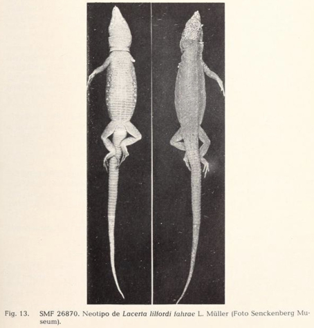 Müller, L. (1927) - Beitrag zur Kenntnis der Rassen von Lacerta lilfordi Gthr. - Zoologischer Anzeiger, Leipzig, 73: 257-269.  Salvador, A. (1979) - Materiales para una ‘Herpetofauna balearica‘. 2. Taxonomia de las lagartijas balears del archipiélago de Cabrera. - Bonner zoologische Beiträge, Bonn, 30: 176-191.  Pérez-Cembranos, A. & Pérez-Mellado, V. & Alemany, I. & Bassitta, M. & Terrasa, B. & Picornell, A. & Castro, J.A. & Brown, R.P. & Ramon, C. (2020) - Morphological and genetic diversity of the Balearic lizard, Podarcis lilfordi (Günther, 1874): Is it relevant to its conservation? - Diversity and Distributions. https://doi. org/10.1111/ddi.13107  ×Aims: To characterize the genetic and morphological diversification of the endan- gered Balearic lizard Podarcis lilfordi and to assess the relevance of this diversity, and how it is described, to conservation measures.