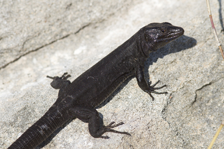 Pérez-Mellado, V. & Hernández-Estévez,J.A. & Garcia-Diaz, T. & Terrasa, B. & Ramón, M.M. & Castro, J. & Picornell, A. & Martin-Vallejo, J. & Brown, R. (2008) - Population density in Podarcis lilfordi (Squamata, Lacertidae), a lizard species endemic to small islets in the Balearic Islands (Spain) - Amphibia-Reptilia, 29: 49-60  ×he Balearic lizard, Podarcis lilfordi, is present in 43 insular populations in the Cabrera archipelago and around the coasts of Mallorca and Menorca islands (Spain). We studied lizard densities over the entire range of distribution, analyzing observed differences of density in relation to island area, habitat diversity, availability of resources, presence of predators, competitors and human disturbances. The density of the Balearic lizard varies from less than 35 to almost 8000 lizards ha-1, with an average of around 1500 lizards ha-1. In some very small islets we detected no more than 10 individuals. Using a subsample of nine coastal islets (Menorca) we did not find any significant correlation between ground arthropod biomass and lizard density. The combination of island area and its maximal altitude, its so-called biotic capacity, was also uncorrelated with lizard density. In addition, neither degree of island accessibility nor presence/absence of seagull breeding colonies, were able to explain lizard densities.