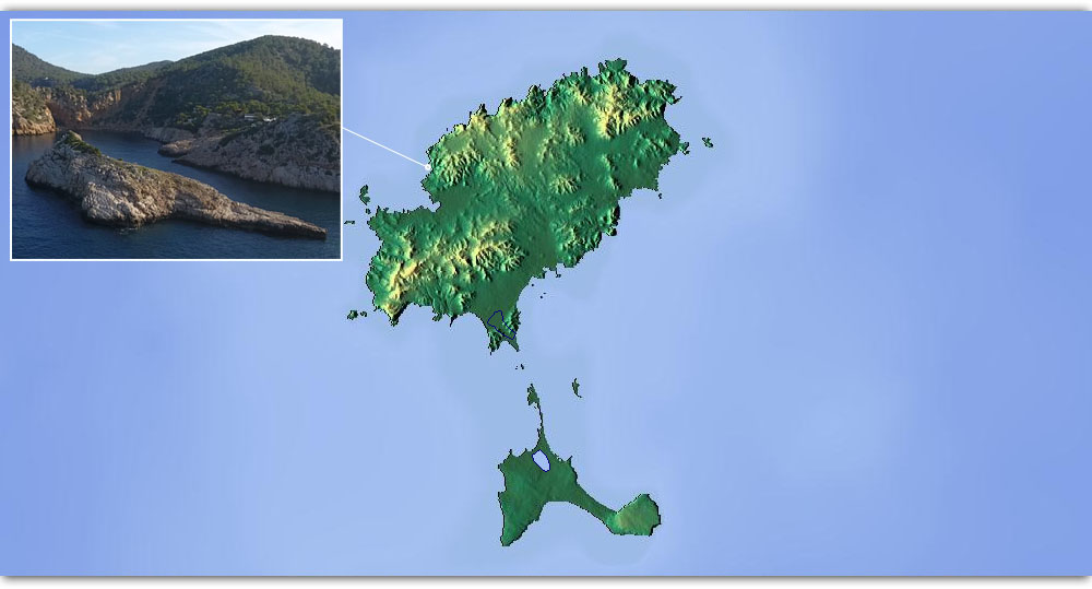 Isla der Cala Salada (Cala Salada ist eine Meeresbucht an der Westküste von Ibiza).