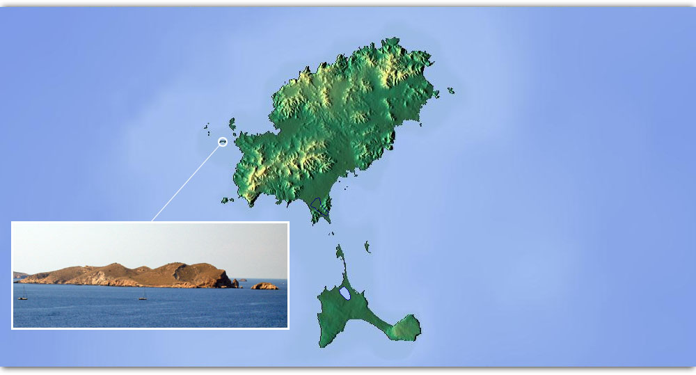 Insel Esparto (Esparta oder Espartal), Westküste von Ibiza, Pityusen.