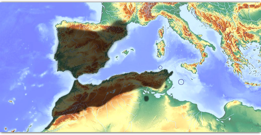 Location The Iberian Peninsula and North Africa.