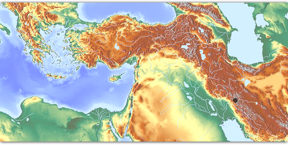 Main Zagros mountain Range (3000-3200 m elevation), at Fereydun [= Feredun] Shahr, W of Daran (32°56`N, 50°05`E).