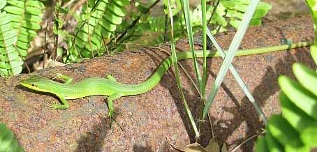 We describe a green lacertid lizard, Takydromus hani, from central Vietnam. It differs from congeners in having 6-8 (versus 1-5) femoral pores on each thigh. The phylogenetic relationships of this continental form seem to be with T. sauteri of Taiwan, and T. toyamai and T. smaragdinus of the Ryukyu Archipelago.