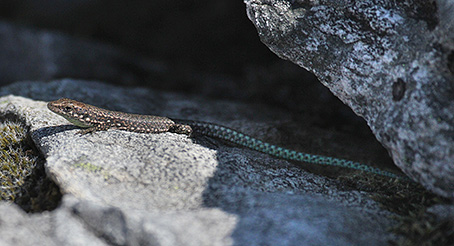 Nur die Exemplare von Orlà unterscheiden sich deutlich von allen übrigen. Sie besitzen eine hellere Rückengrundfarbe mit deutlicher dunkler Färbung. Pholidotisch unterscheiden sie sich von den übrigen Populationen an der Körperunterseite (vor allem ihre größeren Gularia und Ventralia) sowie durch kleinere Masseterica und Analia; auch haben sie relativ längere Hinterbeine. Die Unterschiede in den Extremitätenproportionen könnten im Zusammenhang mit der gut ausgebildeten Kletterfähigkeit und dem bewohnten Gesteinstyp gesehen werden. Die Populationen von Orlà sind entweder tatsächlich isoliert oder sie stehen mit Maubèrme Tieren über einen sehr schmalen Korridor in Verbindung. Mayer, W. & Arribas, O. (2003) - Phylogenetic relationships of the European lacertid genera Archaeolacerta and Iberolacerta and their relartionships to some other ´Archaeolacertae´ (sensu lato) from Near East, derived from mitochondrial DNA sequences. - Journal of Zoological Systematics and Evolutionary Research, Berlin, 41 (3): 157-161.  ×Parts of the mitochondrial genes coding for 12SrRNA and 16SrRNA (together about 960 bp) were sequenced for all Mediterranean species of `Mountain lizards` of the genera Archaeolacerta (sensu lato) and Iberolacerta. All subspecies of the Iberian species Iberolacerta cyreni and I. monticola were included in this study. In addition, samples of Apathya cappadocica and Darevskia rudis were analysed to elucidate the relationships of the European `Mountain lizards` to their possible relatives in the Near East. Maximum parsimony and neighbour joining analyses lead to the following major conclusions: (i) the monophyly of the genus Iberolacerta is very well supported; (ii) Archaeolacerta bedriagae (the type species of the genus) is most basal with respect to the ingroup taxa. If we accept Iberolacerta as a genus, Archaeolacerta becames paraphyletic. Therefore, we propose to restrict Archaeolacerta to the type species and to treat A. mosorensis and A. oxycephala provisionally as members of the collective genus Lacerta; (iii) within the genus Iberolacerta three groups were found: a Pyrenean group, an Iberian group and I. horvathi. The relationships among these groups remain unresolved; and (iv) the Peña de Francia lizards, described originally as a subspecies of I. cyreni, are in fact more closely related to I. monticola. Arnold, E.N. & Arribas, O. & Carranza, S. (2007) - Systematics of the Palaearctic and Oriental lizard tribe Lacertini (Squamata: Lacertidae: Lacertinae), with descriptions of eight new genera. - Zootaxa, 1430: 1-86.  ×DNA sequence indicates the Lacertidae contain two subfamilies, Gallotiinae and Lacertinae, the latter comprising two