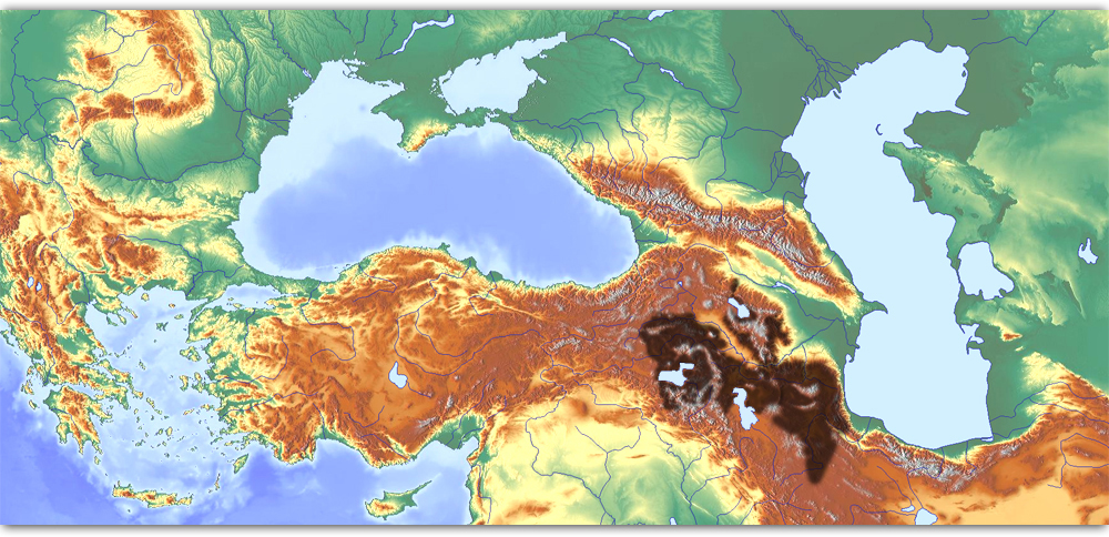 Armenia, southern Azerbaijan, eastern Turkey and northwestern Iran.