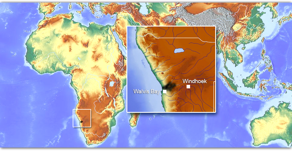 | Northern side of Husab Mountain, Namib Park, Swakopmund Dist., S.W.A., Namibia, 22° 40’ S, 15° 08’ E, 750 m elevation. |