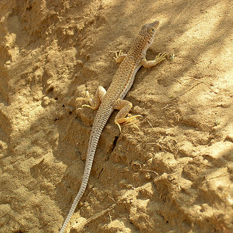 Günther, A. (1864) - Acanthodactylus cantoris. - In: Günther, A.C.L.G. (ed.): The Reptiles of British India. Roy Society, London, 73-74.  Harris, D.J. & Arnold, E.N. (2000) - Elucidation of the relationships of spiny-footed lizards, Acanthodactylus spp. (Reptilia: Lacertidae) using mitochondrial DNA sequence, with comments on their biogeography and evolution. - Journal of Zoology, London, 252 (3): 351-362.  ×Mitochondrial DNA sequences consisting of 645 sites from the 12S rRNA and 16S rRNA genes were used to estimate the phylogeny of 15 of the 32 species of spiny-footed lizards Acanthodactylus. The resultant tree has similarities to that produced from a differentially weighted data set of 32 morphological characters but there are also significant differences. However, combined analysis of molecular and morphological data sets produces the same tree topology as DNA sequence alone. The molecular data confirm that there are distinct eastern and western clades within Acanthodactylus, but place A. boskianus in the former while the A. scutellatus group constitutes a third clade. Species for which only morphological information is available were integrated with the combined tree to give a provisional phylogeny for 31 species. This phylogeny indicates that the ancestor of existing Acanthodactylus probably originated in south-west Asia and that North Africa was invaded by more than one lineage of the genus. It also suggests that soft aeolian sand habitats may have been independently occupied more than once. Molecular data provide independent evidence that the differential weighting of morphological characters in past analyses was appropriate. Tamar, K. & Carranza, S. & Sindaco, R. & Moravec, J. & Trape, J.-F. & Meiri, S. (2016) - Out of Africa: Phylogeny and biogeography of the widespread genus Acanthodactylus (Reptilia: Lacertidae). - Molecular Phylogenetics and Evolution, 103: 6-18.  ×Acanthodactylus lizards are among the most diverse and widespread diurnal reptiles in the arid regions spanning from North Africa across to western India. Acanthodactylus constitutes the most species-rich genus in the family Lacertidae, with over 40 recognized species inhabiting a wide variety of dry habitats. The genus has seldom undergone taxonomic revisions, and although there are a number of described species and species-groups, their boundaries as well as their interspecific relationships are largely unresolved. We constructed a multilocus phylogeny, combining data from two mitochondrial (12S, cytb) and three nuclear (MC1R, ACM4, c-mos) markers for 302 individuals belonging to 36 known species, providing the first large-scale time-calibrated molecular phylogeny of the genus. We evaluated phylogenetic relationships between and within species-groups, and assessed Acanthodactylus biogeography across its known range. Acanthodactylus cladogenesis is estimated to have originated in Africa due to vicariance and dispersal events from the Oligocene onwards. Radiation started with the separation into three clades: the Western and scutellatus clades largely distributed in North Africa, and the Eastern clade occurring mostly from Arabia to south-west Asia. Most Acanthodactylus species diverged during the Miocene, possibly as a result of regional geological instability and climatic changes. We support most of the current taxonomic classifications and phylogenetic relationships, and provide genetic validity for most species. We reveal a new distinct blanfordii species-group, suggest new phylogenetic positions (A. hardyi, A. masirae), and synonymize several species and subspecies (A. lineomaculatus, A. boskianus khattensis and A. b. nigeriensis) with their phylogenetically closely-related species. We recommend a thorough systematic revision of taxa exhibiting high levels of intraspecific variability as well as clear evidence of phylogenetic complexity such as A. guineensis, A. grandis, A. dumerilii, and A. senegalensis and the pardalis and erythrurus species-groups.