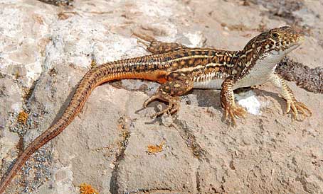 Boulenger, G.A. (1918) - Description of Acathodactylus erythrurus atlanticus. - In: “Sur les lézards du genre Acanthodactylus Wieg.” - Bulletin de la Société zoologique de France, 43: 143-155.  Fonseca, M.M. & Brito, J.C. & Paulo, O.S. & Carretero, M.A. & Harris, D.J. (2009) - Systematic and phylogeographical assessment of the Acanthodactylus erythrurus group (Reptilia: Lacertidae) based on phylogenetic analyses of mitochondrial and nuclear DNA - Molecular Phylogenetics and Evolution, 51 (2): 131-142.  ×We have used mitochondrial 12S rRNA, 16S rRNA and nuclear β-fibrinogen (intron 7) sequences to investigate the phylogenetic and phylogeographic relationships between Acanthodactylus erythrurus group species (except for A. boueti). The phylogenetic analyses of the Acanthodactylus genus did not cluster A. guineensis and A. savignyi with the remaining species of the group (A. blanci, A. lineomaculatus and A. erythrurus). Within the A. erythrurus group, the results of the mitochondrial DNA (mtDNA) and nuclear DNA (nDNA) showed a complex phylogeny with geographic structure, but it was not congruent with the present taxonomy. Some taxonomic units, such as A. blanci, A. lineomaculatus, A. e. atlanticus and A. e. belli did not form monophyletic genetic units. The application of a molecular clock suggested that the uplift of the Atlas Mountains in the mid-late Miocene and the reopening of the Strait of Gibraltar could be major biogeographic events responsible for the genetic differentiation in the group. Additionally, diverse micro-evolutionary patterns due to the recent contraction/expansion phases of the habitats in North Africa associated with the high dispersal capabilities of these lizards could be related to the complex phylogenetic patterns observed. Tamar, K. & Carranza, S. & Sindaco, R. & Moravec, J. & Trape, J.-F. & Meiri, S. (2016) - Out of Africa: Phylogeny and biogeography of the widespread genus Acanthodactylus (Reptilia: Lacertidae). - Molecular Phylogenetics and Evolution, 103: 6-18.  ×Acanthodactylus lizards are among the most diverse and widespread diurnal reptiles in the arid regions spanning from North Africa across to western India. Acanthodactylus constitutes the most species-rich genus in the family Lacertidae, with over 40 recognized species inhabiting a wide variety of dry habitats. The genus has seldom undergone taxonomic revisions, and although there are a number of described species and species-groups, their boundaries as well as their interspecific relationships are largely unresolved. We constructed a multilocus phylogeny, combining data from two mitochondrial (12S, cytb) and three nuclear (MC1R, ACM4, c-mos) markers for 302 individuals belonging to 36 known species, providing the first large-scale time-calibrated molecular phylogeny of the genus. We evaluated phylogenetic relationships between and within species-groups, and assessed Acanthodactylus biogeography across its known range. Acanthodactylus cladogenesis is estimated to have originated in Africa due to vicariance and dispersal events from the Oligocene onwards. Radiation started with the separation into three clades: the Western and scutellatus clades largely distributed in North Africa, and the Eastern clade occurring mostly from Arabia to south-west Asia. Most Acanthodactylus species diverged during the Miocene, possibly as a result of regional geological instability and climatic changes. We support most of the current taxonomic classifications and phylogenetic relationships, and provide genetic validity for most species. We reveal a new distinct blanfordii species-group, suggest new phylogenetic positions (A. hardyi, A. masirae), and synonymize several species and subspecies (A. lineomaculatus, A. boskianus khattensis and A. b. nigeriensis) with their phylogenetically closely-related species. We recommend a thorough systematic revision of taxa exhibiting high levels of intraspecific variability as well as clear evidence of phylogenetic complexity such as A. guineensis, A. grandis, A. dumerilii, and A. senegalensis and the pardalis and erythrurus species-groups.