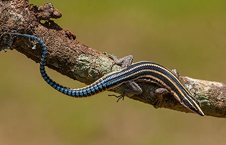 Holaspis is the most morphologically apomorphic lacertid taxon with 42 or more derived morphological features arising on its exclusive lineage. Nearly all of these confer advantages in three specialised activities, or ameliorate problems resulting from them. The activities are: climbing on the often vertical open surfaces on tree boles and branches, utilising very narrow crevices in wood and beneath bark, and the ability, unique among lacertids, to glide from tree to tree. Although many of the features related to these activities are likely to result from direct adaptation to the situations concerned, exaptation has been critical in the development of gliding. Two behaviours present in the earliest lacertids have been coopted to this activity: rib spreading associated with basking contributes to an effective aerofoil, and balance control associated with running helps maintain appropriate posture in the air. Features originally developed in the context of crevice use also contribute to the aerofoil and a high surface: weight ratio. So, while natural selection has moulded Holaspis for its present activities, multiple accidents of history have also been important, as they also have in the evolution of bird flight.