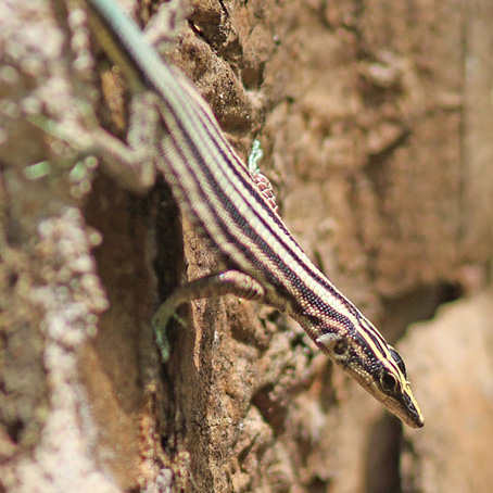 Holaspis is the most morphologically apomorphic lacertid taxon with 42 or more derived morphological features arising on its exclusive lineage. Nearly all of these confer advantages in three specialised activities, or ameliorate problems resulting from them. The activities are: climbing on the often vertical open surfaces on tree boles and branches, utilising very narrow crevices in wood and beneath bark, and the ability, unique among lacertids, to glide from tree to tree. Although many of the features related to these activities are likely to result from direct adaptation to the situations concerned, exaptation has been critical in the development of gliding. Two behaviours present in the earliest lacertids have been coopted to this activity: rib spreading associated with basking contributes to an effective aerofoil, and balance control associated with running helps maintain appropriate posture in the air. Features originally developed in the context of crevice use also contribute to the aerofoil and a high surface: weight ratio. So, while natural selection has moulded Holaspis for its present activities, multiple accidents of history have also been important, as they also have in the evolution of bird flight.