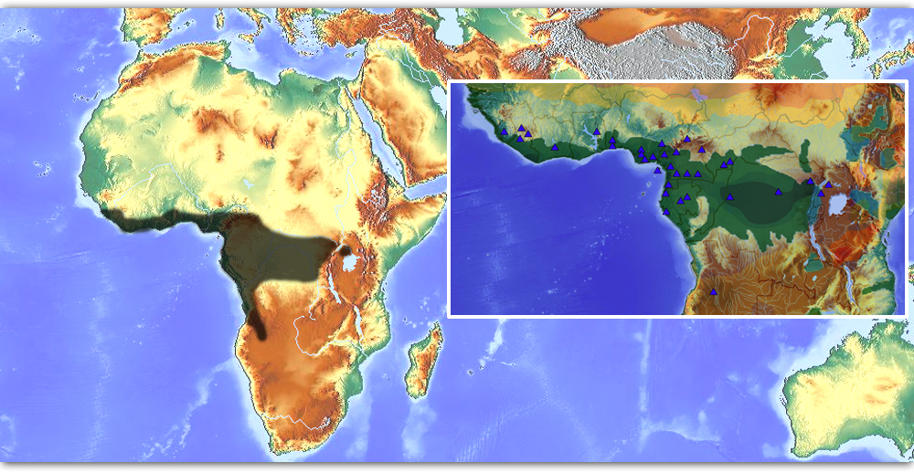 Angola, Benin, Cameroon, Central African Republic, Cote d`Ivoire, Equatorial Guinea, Gabon, Ghana, Guinea, Liberia, Nigeria, Republic of Congo, Sierra Leone, The Democratic Rupublic of the Congo, Togo, Uganda