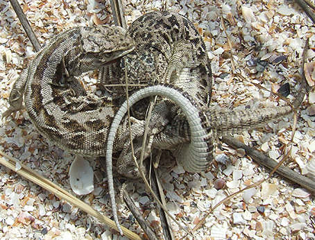 Pallas, P.S. (1773) - Description of Eremias arguta arguta. - In: “Reise durch verschiedene Provinzen des Russischen Reiches. Vol. 2”. - Kaiserlichen Akademie der Wissenschaften, St. Petersburg. 744 pp.  Bauer, A.M. & Günther, R. (1995) - An annotated type catalogue of the lacertids (Reptilia: Lacertidae) in the Zoological Museum, Berlin. - Mitteilungen aus dem Zoologischen Museum in Berlin, 71: 37-62.  ×A complete catalogue is provided for the type specimens of lacertid lizards in the herpetological collection of the Zoological Museum, Berlin, as of December, 1993. The collection contains a total of 514 type specimens, representing 63 taxa, of which 42 are currently regarded as valid at the specific or subspecific level. Types representing an additional four taxa appear to have been lost from the collection. The collections are especially rich in African lacertid types and in historically significant specimens collected early in the Nineteenth Century by Pallas, Eversmann, and Hemprich & Ehrenberg. Also present are the type series of many subspecies of Podarcis lilfordi and P. pityusensis described by Eisentraut. Chirikova, M.A. & Kolbinzev, W.G. (2003) - Morphologie und Unterartgliederung des Steppenrenners, Eremas arguta PALLAS, 1773, in Kasachstan. - Salamandra, 39 (1): 49-60.  ×Es wurde die externe Morphologie von Eremias arguta in Kasachstan untersucht. Analysiert wurden drei metrische und zehn meristische Merkmale sowie die Dorsalzeichnung von 206 Individuen aus 13 Populationen in Süd-, Südost- und Ost-Kasachstan. Ein Geschlechtsdimorphismus wurde bei den Merkmalen relative Schwanzlänge (♀♀ > ♂♂), Anzahl der Femoralporen (♀♀ < ♂♂) sowie Anzahl der Gularia entlang der Kehlmitte (♀♀ < ♂♂) festgestellt. Bei einigen Merkmalen (Anzahl Dorsalia, Gularia, Femoralporen, Schuppenzahl zwischen den beiden Femoralporenreihen) besteht eine klinale Variation. Die meisten der Stichproben weisen ein Zeichnungsmuster aus großen, weißen, unregelmäßigen Flecken und einer dunklen Querstreifung auf. In Ost-Kasachstan treten dagegen Individuen auf, die kleine weiße Flecken und eine dunkle unregelmäßige zusammenfließende Querstreifung besitzen. Die Tiere der südlichsten Stichproben haben dagegen längliche weiße und unregelmäßige schwarze Flecken. Die systematische Position der ost-kasachischen Populationen ist nicht deutlich und benötig weitere Untersuchungen. Südost-kasachische Populationen gehören dagegen zu E. a. potanini, süd-kasachische Populationen zu E. a. uzbekistanica. Poyarkov Jr., N.A. & Orlova, V.F. & Chirikova, M.A. (2014) - The mitochondrial phylogeography and intraspecific taxonomy of the Steppe Racerunner, Eremias arguta (Pallas) (Lacertidae: Sauria: Reptilia), reflects biogeographic patterns in Middle Asia. - Zootaxa, 3895 (2): 208-224.  ×Steppe racerunner, Eremias (Eremias) arguta, is one of the most widespread species of the Asian racerunners (genus Er-emias). Several subspecies were traditionally recognized however, morphological variability is so high that delimitation of these subspecies was always problematic. Here we present a phylogenetic hypothesis for this species based on cyto-chrome b sequences (55 samples from 35 populations, 900 bp partial sequences), infer it biogeography and the revise its subspecific structure. Six major phylogenetic lineages were revealed. The southernmost populations (E. a. uzbekistanica) from Uzbekistan form a clade together with the Issyk-Kul Lake subspecies (E. a. darevskii) based on both molecular and morphological evidence. Within more northern populations, there is a split between populations from Northern Caucasus, Europe and Western Kazakhstan (E. a. deserti) and Central and Eastern Kazakhstan populations (E. a. arguta). Transcau-casian (E. a. transcaucasica) steppe racerunners are grouped with Middle Asian populations. Finally, the easternmost samples, assigned to “E. a. potanini” are nested within the E. a. arguta clade. Populations from the Ili River Valley form a separate lineage sister to the clade joining all other E. arguta lineages and might represent a yet undescribed taxon. Spe-cies distribution in relation to historical biogeography of Middle Asia is discussed.