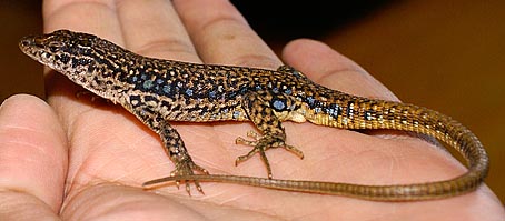 Mountain, Bayanhongor Aymak, southern Mongolia. Orlova, V.F. & Poyarkov, N.A. & Chirikova, M.A. & Nazarov, R.A. & Munkhbataar, M. & Munkhbayar, K. & Terbish, K. (2017) - MtDNA differentiation and taxonomy of Central Asian racerunners of Eremias multiocellata-E. przewalskii species complex (Squamata, Lacertidae) - Zootaxa 4282 (1): 1-42.  ×We provide an integrative analysis of the diversity of the E. multiocellata—E. przewalskii species complex in Central and Middle Asia using morphological and molecular (COI DNA-barcoding) data. We report preliminary data on mtDNA variation within this group and clarify the taxonomic status and distribution of the members of the species complex. We also provide a description of a new Eremias species from Eastern Kazakhstan and western Mongolia, where it occurs in sympatry with E. multiocellata sensu stricto, from which it can be clearly differentiated using both morphological and molecular characters. The new species, described as Eremias dzungarica sp. nov., is assigned to the subgenus Pareremias on the basis of the following features: subocular not reaching mouth edge; one frontonasal; two supraoculars; the row of small granular scales between supraoculars and frontal with frontoparietals absent; distance between the femoral pore rows being wide; femoral pore rows not reaching knee-joint; coloration pattern with light colored ocelli with black edging. The new species can be distinguished from its congeners on the basis of the following morphological attributes: a mediumsized lacertid lizard, maximum snout-vent length (SVL) = 64.5 mm, tail being ca. 1.5 times longer than body length (SVL), hindlimbs relatively long (hindlimb length to SVL ratio 0.46); subocular scale not reaching mouth edge, in touch with 6–8 supralabials; males with bright coloration consisting of 2–3 dorsolateral rows of light-colored ocelli with thick black edging; the ventral row of ocelli in life is greenish to bluish; dorsal pattern consisting of black irregular blotches along the middorsal line. We also report on the high genetic and morphological diversity of E. multiocellata in Mongolia and China, synonymize E. m. bannikowi with the nominative form E. m. multiocellata, discuss variation within E. przewalskii, synonymize E. p. tuvensis with the nominative form E. przewalskii, provide new data on E. cf. reticulata and E. m. tsaganbogdensis, confirm validity and clarify distribution ranges of E. stummeri, E. szczerbaki and E. yarkandensis and discuss further progress on taxonomic studies of the E. multiocellata—E. przewalskii species complex.