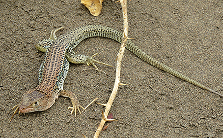 Bedriaga, J. von (1912) - Amphibien und Reptilien. - Wissenschaftliche Resultate der von N.M. Przewalski nach Central-Asien unternommenen Reisen. Band III, Abteilung 1.  Liu, J. & Ananjeva, N.A. & Chirikova, M.A. & Milto, K.D. & Guo, X. (2014) - Molecular Assessment and taxonomic status of the Rapid Racerunner (Eremias velox complex) with particular attention to the populations in Northwestern China. - Asian Herpetological Research, 5 (1): 12-25.  ×The rapid racerunner, Eremias velox, is a widely distributed lizard from the northern Caucasus across entire Central Asia eastward to China. It is increasingly common to accept E. velox as a species complex in its entire range. To date, published morphological and molecular systematic hypotheses of this complex are only partially congruent, and its taxonomic status and evolutionary history are still far from clear. The mitochondrial cytochrome b gene and 12S rRNA sequences were used to evaluate the taxonomy of this complex, with particular attention to the phylogenetic placement of populations in northwestern China. Examination of the phylogenetic analyses recovers seven distinct, biogeographically discrete, and well-supported clades, revealing genetically identifiable populations corresponding to some previously morphology-defined subspecies. Chinese E. v. roborowskii appears to have split from other Central Asian rapid racerunner lizards well before differentiation occurred among the latter taxa. Specifically, we corroborate that there are two subspecies occurring in China, i.e., E. v. velox and £. v. roborowskii. We recommend a novel subspecific status for the phenotypically and genetically distinct populations in southern Aral Sea region of Uzbekistan previously assigned to E. v. velox. Finally, each of the three independently evolving lineages from Iranian Plateau should be recognized as three species new to science under the general lineage concept. Chirikova, M.A. & Dujsebayeva, T. & Liu, J. & Guo, X. (2019) - Geographical Distribution and Morphological Variability of the Rapid Racerunner, Eremias velox (Pallas, 1771) (Reptilia, Lacertidae) in the Eastern Periphery of Its Range. - Asian Herpetological Research, 10 (4): 230-245.  ×Phenotypic traits are usually correlated with the environment where organism occurs. In this study, the distribution of Eremias velox in the eastern periphery of its range was specified, and its morphological variation was analyzed. Linear dimensions, pholidosis, coloration and pattern features were compared among 135 specimens from nine populations inhabiting the Balkhash, Ili and Alakol basins, Junggar and Turpan depressions in the territory of Southeast Kazakhstan and Xinjiang, Northwest China. The populations from the Junggar Depression (Kuytun, Shihezi and Urumqi) were characterized by higher mean values of linear characters, the number of scales across the middle of the body and gular, and were similar in the dominant coloration patterns. Small size, dark coloration and almost complete dominance of the striped-type coloration pattern among the specimens from the Alakol Lake islands seem to have an adaptive significance associated with the isolation of the population and type of their habitats. The subspecies Eremias velox roborowskii (endemic to the Turpan Depression) is elevated to species level, as supported by morphological divergence congruent with molecular and geographical data, including its peculiar type of coloration pattern, significantly lower amount of femoral pores and a higher percentage of specimens with one enlarged preanal scale (72.7%). These results together confirm a high degree of variability in morphology for E. veloх in the eastern periphery of its range, reflecting a complex orography and the existence of multiple geographical barriers in this territory.